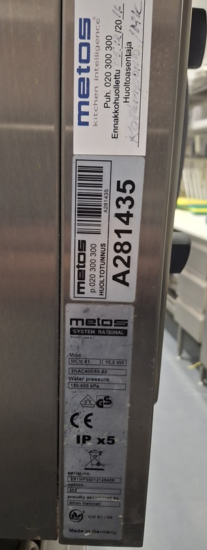 Metos System Rational. Mitat 850×770/860×750. Kuusi johdeparia. GN-mitoitus.